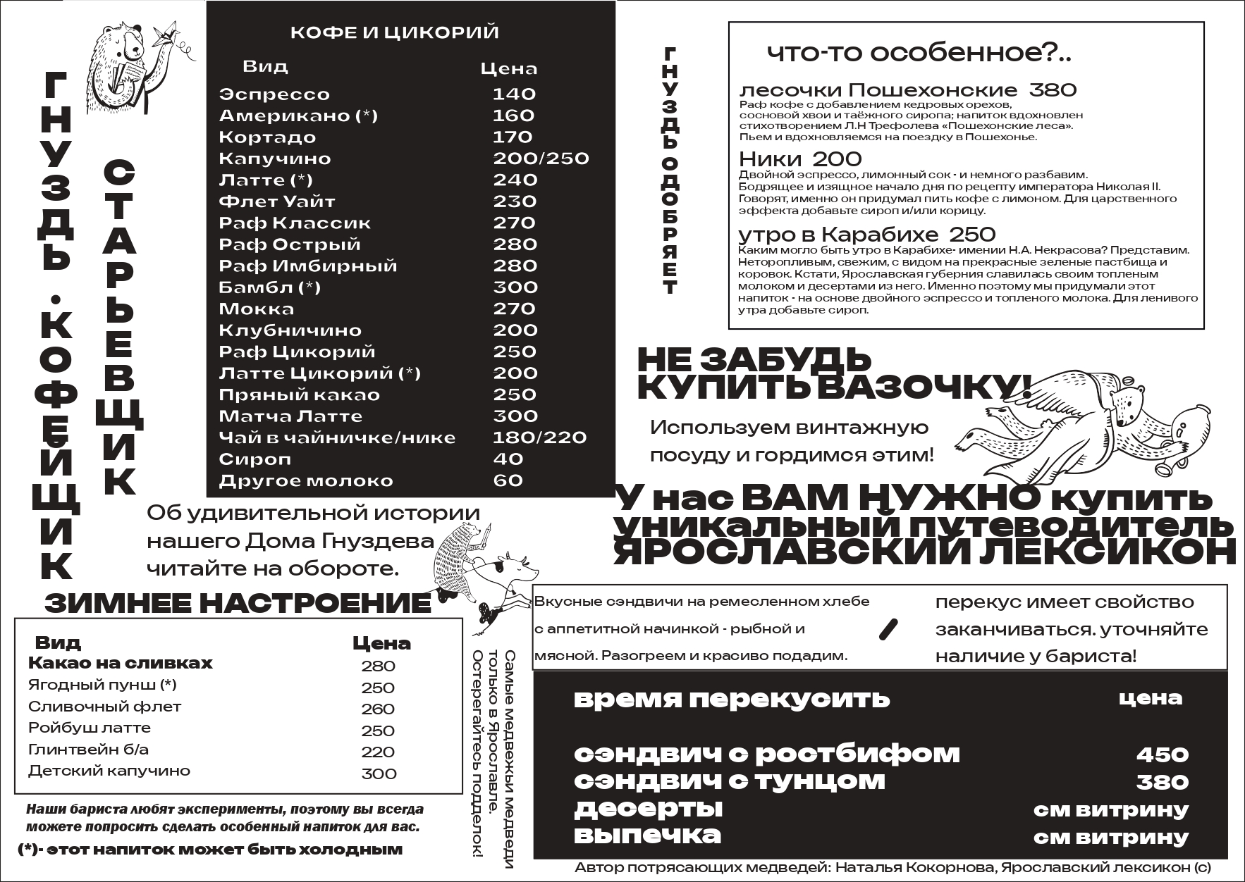 Мы готовим классические кофейные напитки и авторские, вдохновленные историей Ярославля.